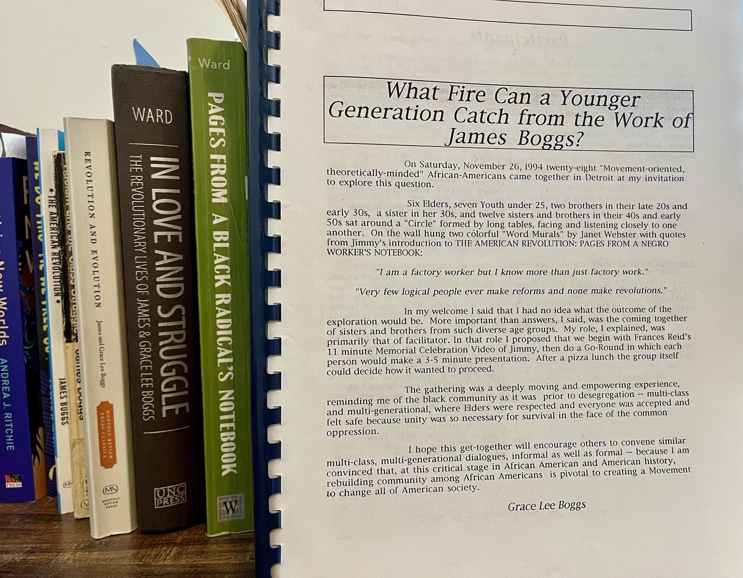 In her autobiography, Living for Change (1998), Grace Lee Boggs offers the following memories of founding the Boggs Center in her Field Street home: