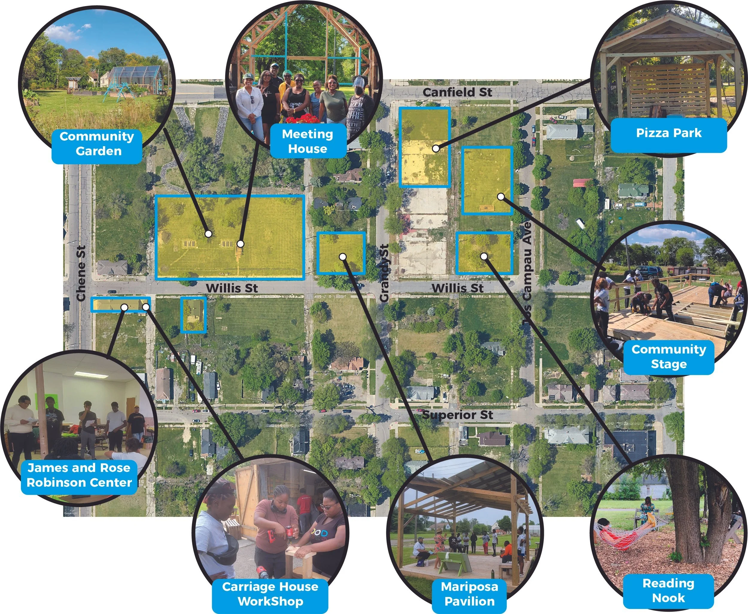 Learn more about our Praxis Sites across Detroit, each of which exemplifies visionary, place-based organizing rooted in the theory and practice of James and Grace Lee Boggs